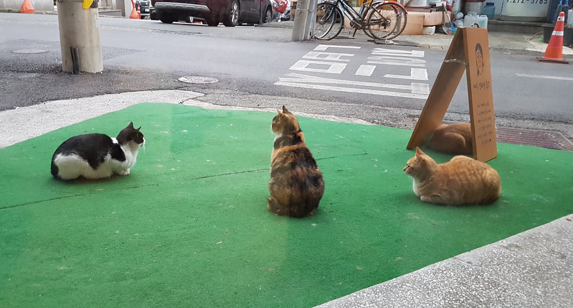 입구 문 밖으로 고양이들이ㅎㅎㅎ